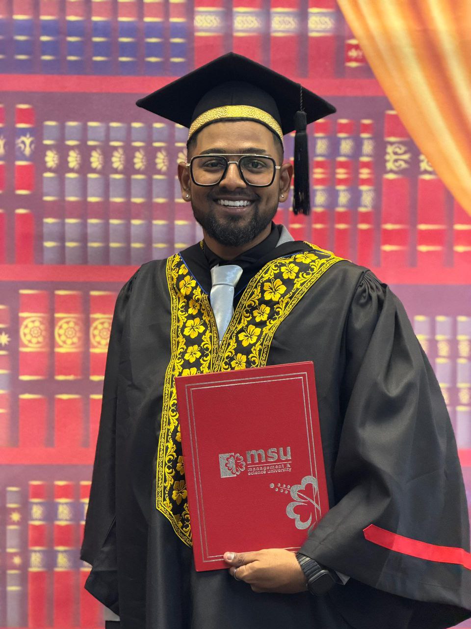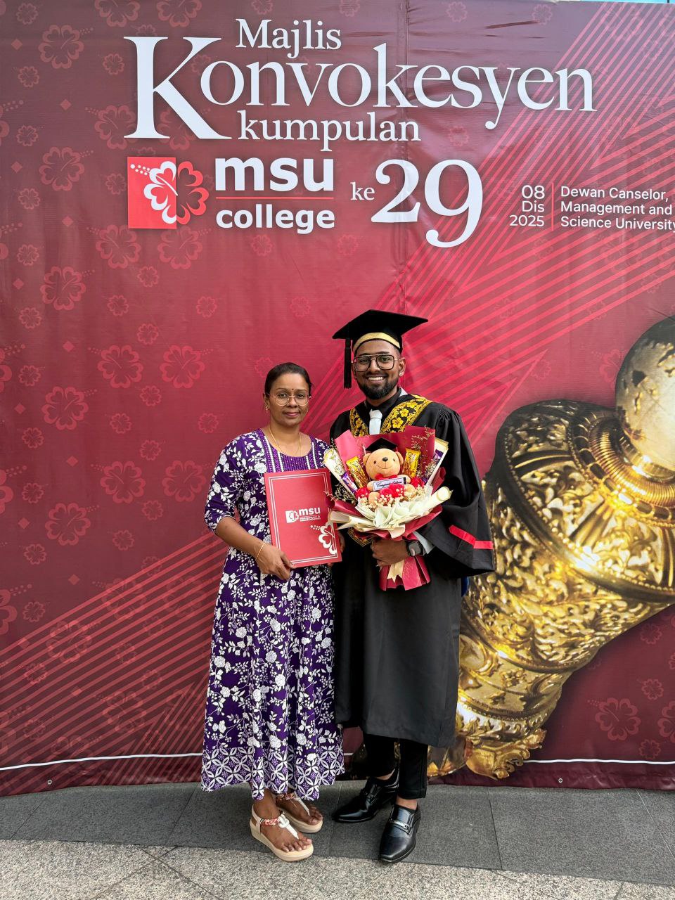 கூலிம், டிசம்பர்  7 - உடல் சிரமம்  தடையாக இருந்த போதிலும் மன உறுதியைத் தளர விடாமல், கெடா, கூலிமைச் சேர்ந்த ஆசிரியர் மதன் பாஸ்கரன் கடந்த சனிக்கிழமை MSU பல்கலைக்கழகத்தில் ஆங்கில ஆசிரியருக்கான இளங்கலைப் பட்டத்தைப் பெருமையுடன் பெற்றார்.