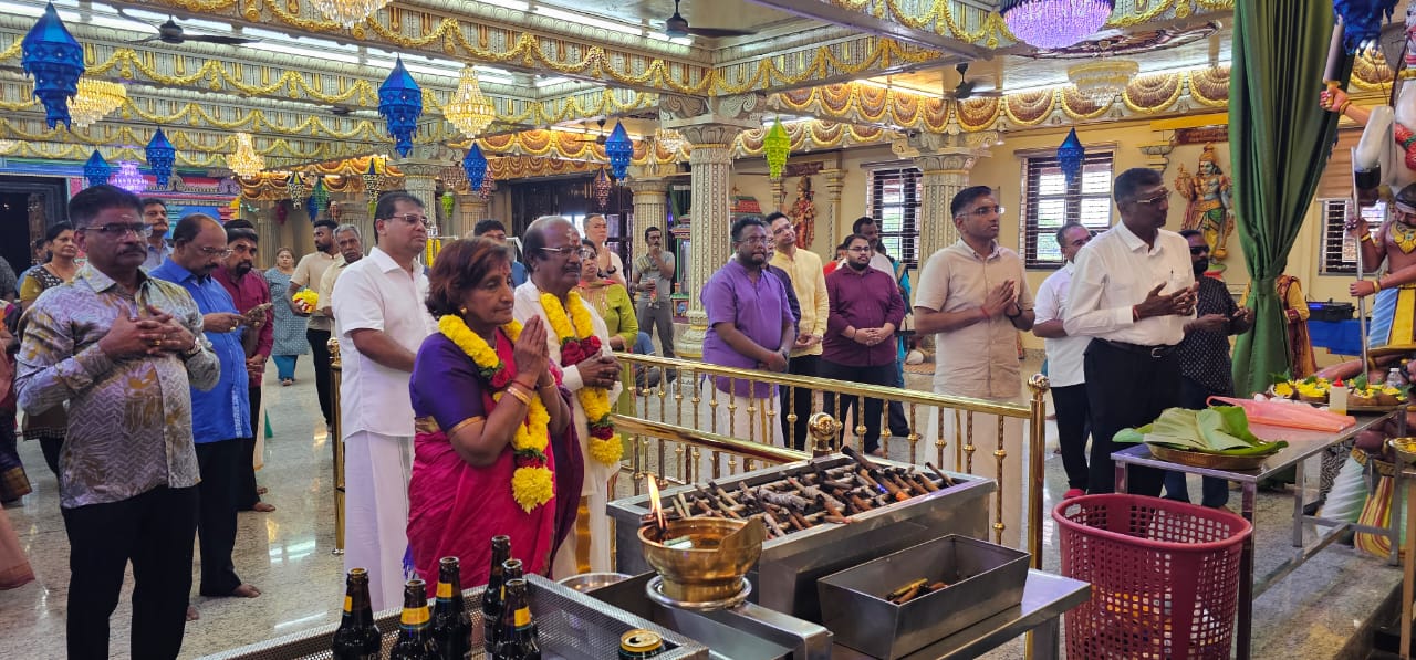 ​மண்டல பூஜையில் விசேஷ வழிபாடு ஆலயத்தின் மண்டல பூஜையை முன்னிட்டு நடைபெற்ற இந்தத் திருமண நாள் கொண்டாட்டத்தில், டத்தோஸ்ரீ ஆர். அருணாசலம் தனது குடும்பத்தினருடன் கலந்து கொண்டார்.இறைவனுக்குச் சிறப்பு அபிஷேக ஆராதனைகள் செய்யப்பட்டு, தம்பதியினரின் நீண்ட ஆயுளுக்காகவும், ஆரோக்கியத்திற்காகவும் கூட்டுப் பிரார்த்தனைகள் முன்னெடுக்கப்பட்டன. பினாங்கு மாநிலத்தின் ஆன்மீக அடையாளமாகத் திகழும் இந்த ஆலயத்தில், மங்கள இசை முழங்க நடைபெற்ற இந்த வழிபாடு காண்போரை நெகிழ்ச்சியில் ஆழ்த்தியது.