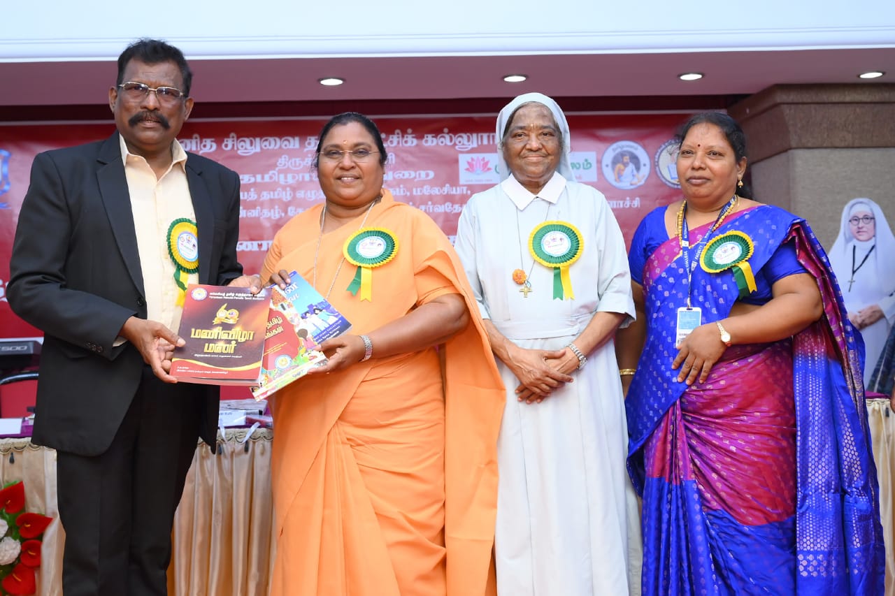 கல்லூரி முதல்வர் முனைவர் இராஜகுமாரி நூலை வெளியிட மலேசியத் தமிழ் எழுத்தாளர் சங்கத்தின் முன்னாள் தலைவர் பெ. இராஜேந்திரன் முதல் நூலைப் பெற்றுக் கொண்டார்.