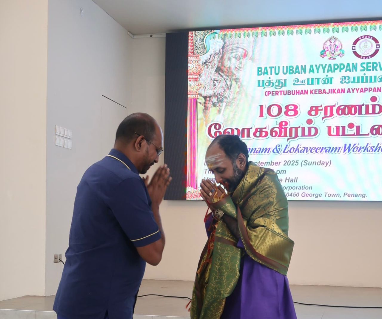 பத்து ஊபான் ஐய்யப்பன் சேவைச் சங்கம் ஏற்பாட்டில் பினாங்கு ஹார்மனி மையத்தில் 108 சரணம் மற்றும் லோகவீரம் குறித்த ஆன்மீக பட்டறையை வெற்றிகரமாக நடத்தியது. இந்த நிகழ்ச்சியில் மொத்தம் 30 பேர் பங்கேற்று பக்தி, அறிவு மற்றும் தியானத்தில் ஒரு நாளை கழித்தனர்.